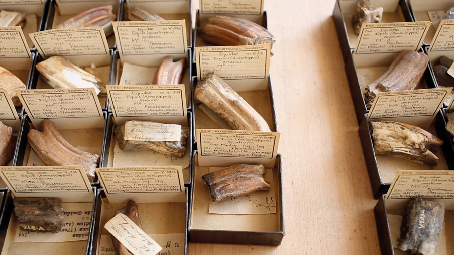 El trabajo de Cristian Villavicencio usa recursos del media-art para encontrar otros modos de comprender los conceptos de conocimiento, historia, ciencia y archivo. Los zooms a las pieles de los animales, a los huesos fosilizados, a las rocas funcionarían como puertas de acceso a lo desconocido, podrían referirnos a una memoria a la que no tendremos acceso, un tiempo detenido anterior a nuestro tiempo.